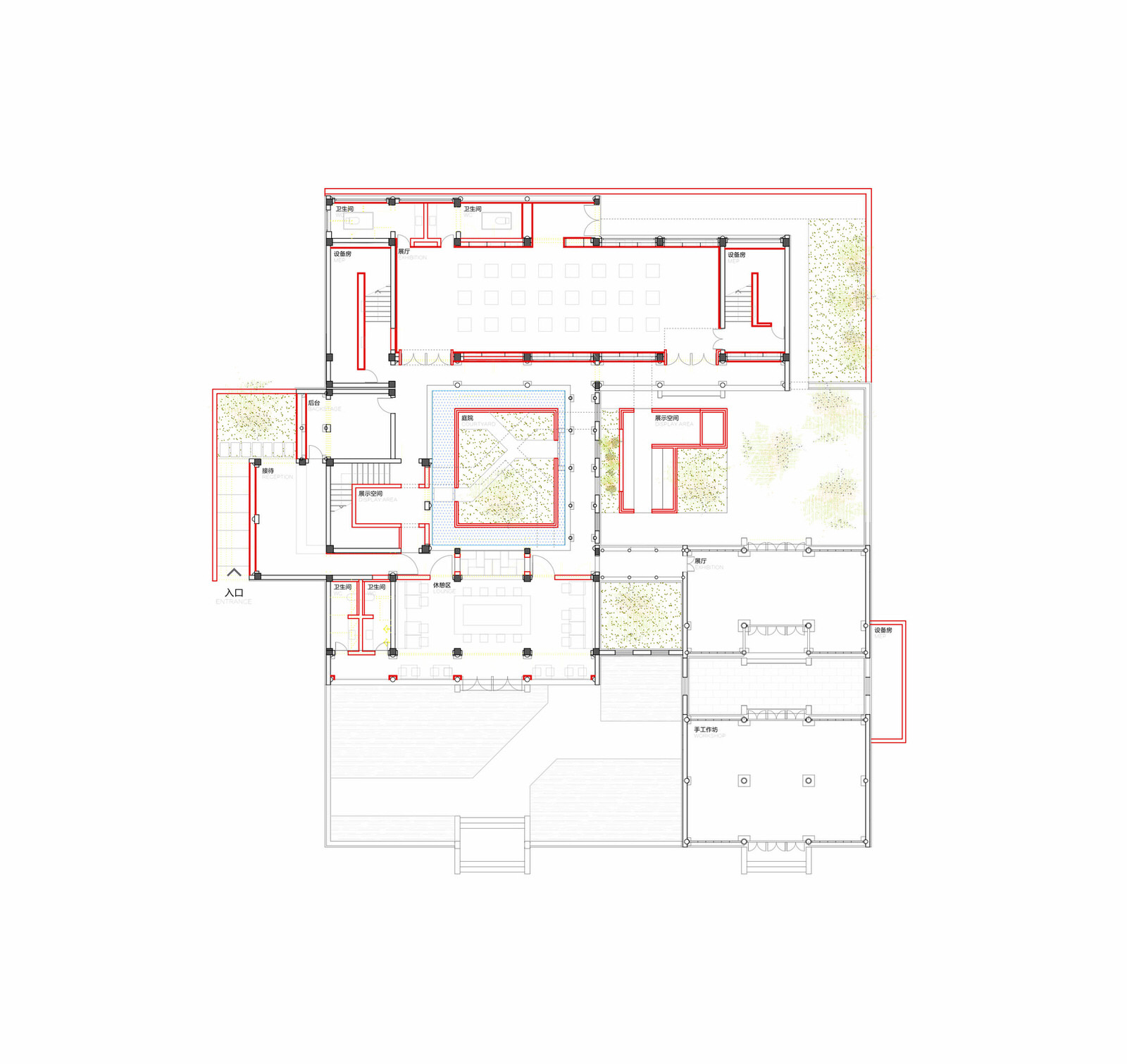 The client is a renowned industrial design company, producing modern design products inspired by traditional handcrafts, such as folding screens made by traditional Embroidery technique from Suzhou and lights based on old-fashioned paper umbrella. The client planned to build up a small museum for product exhibition and its design culture in Suzhou, one of the most important cultural cities in ancient China.