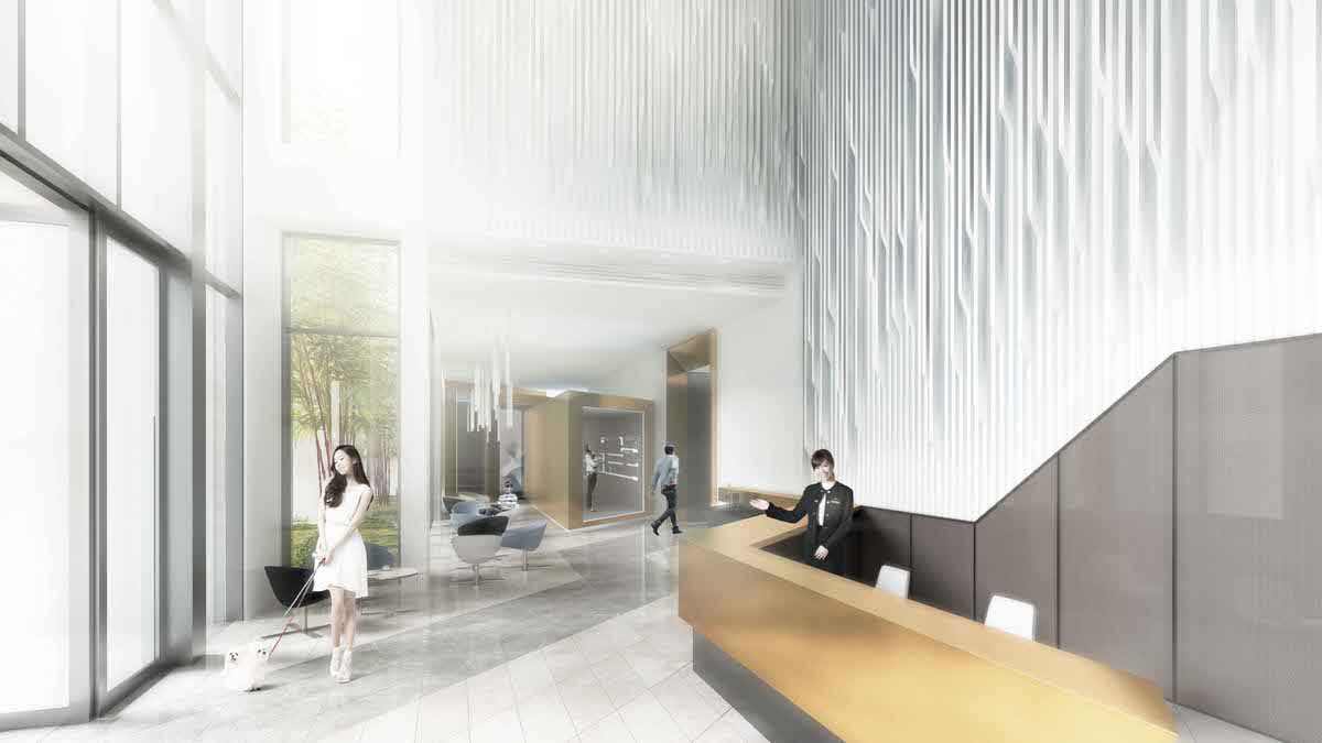 The service apartment located in Qianjiang New City, Hangzhou was designed by PORTMAN COMPANIES. The commissioned interior design included sales office and two apartment showrooms.