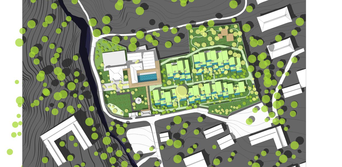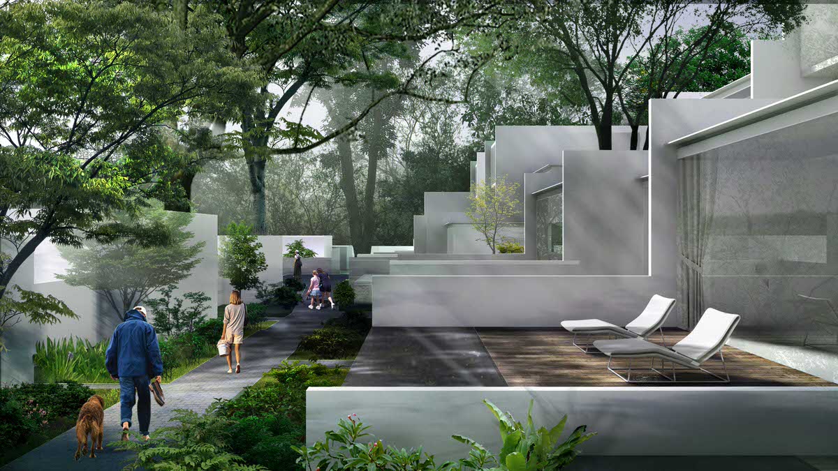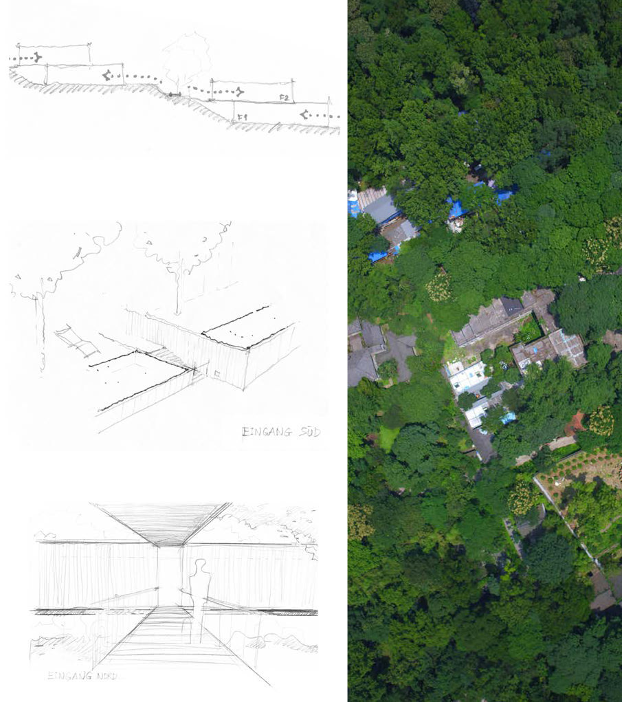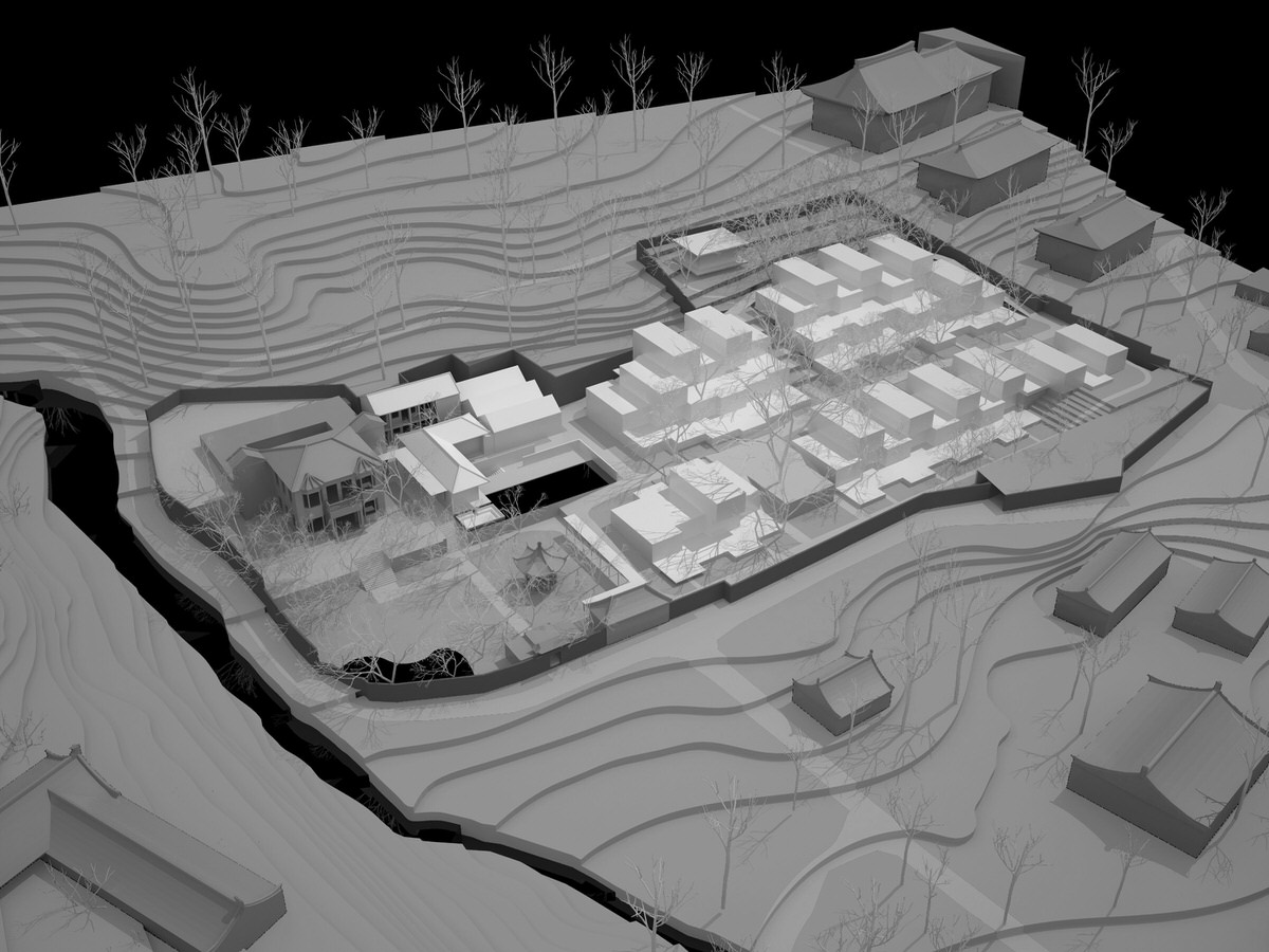 The site located within West Lake area in Hangzhou is adjacent to the famous Lingyin temple, enjoying exclusive ambient. Due to the excellent environment and location, the client insisted on building an exclusive hotel on this small site of only 13000m² with 40 suites. The ambition was to design a highly dense hotel embedded in natural environment, achieving relaxed holiday atmosphere. In order to do so, the design took full advantage of the terrain elevation, behind which many auxiliary functions are hidden. Guest flows will be routed by well-designed pedestrian roads so that every guest unit owns its independent access. The use of terrain elevation also helps improving privacy; therefore, despite of the high density of guestrooms, absolute privacy is guaranteed. Furthermore, most of the trees on site were not moved away, on the contrary, the seemingly free-style layout of the dense suites area is a result of meticulous planning of avoiding vegetation, coordinating elevation and optimizing sunshine.