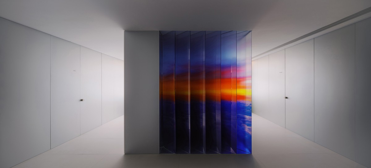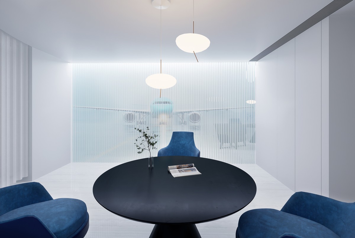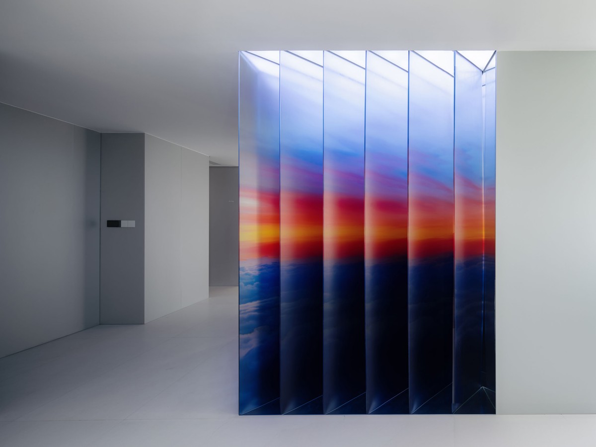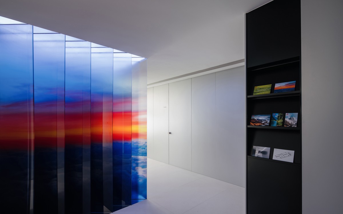 The juxtaposition of art and function within the reception office of LoongAir Travel Agency mirrors the coexistence of abstract feelings and pragmatic plans experienced during travel. The objective is to create a space that balances an orderly and efficient office atmosphere with the abstract and poetic emotions evoked by the art installation. Efficiency and poetry form a harmonious duo on this journey, representing the advanced value provided by the travel agency. The art installation, employing techniques such as image layering and light effects, simulates the vast scenes in the clouds. The design masterfully presents the juxtaposition and integration of a travel agency and an art gallery, creating a unique and immersive experience for visitors.